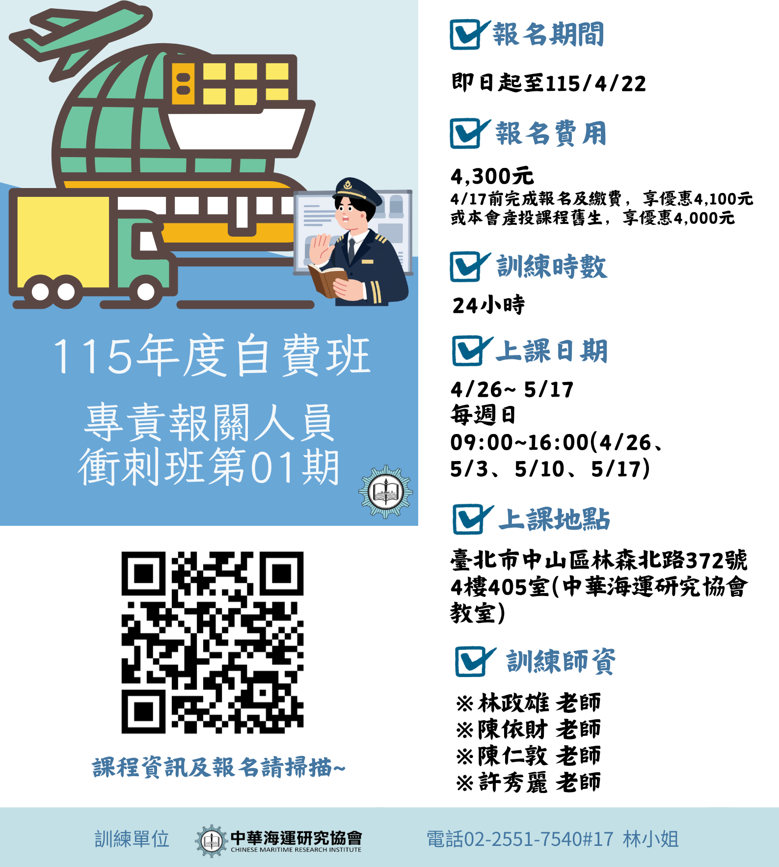 104410臺北市中山區林森北路372號4樓405室(中華海運研究協會教室)